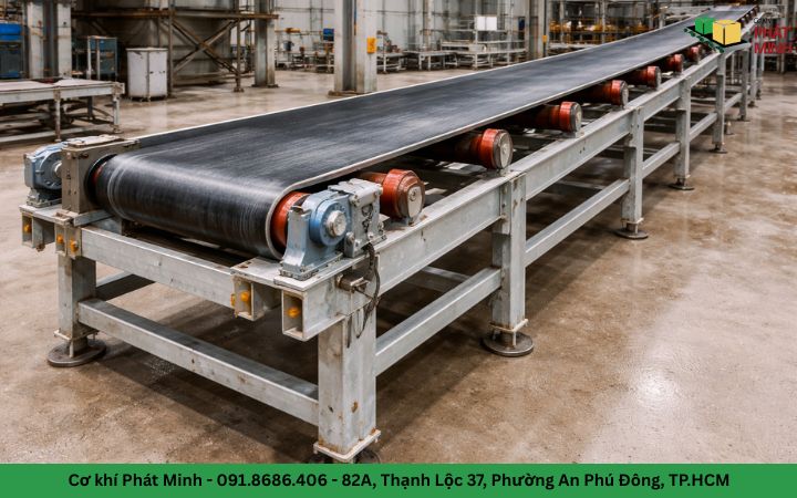 CÔNG TY TNHH CƠ KHÍ THƯƠNG MẠI PHÁT MINH nhận gia công khung băng tải theo yêu cầu thực tế của từng doanh nghiệp, từ các hệ thống băng tải tải nhẹ đến kết cấu chịu tải cao cho dây chuyền công nghiệp. Chúng tôi hiểu rằng một bộ khung tốt không chỉ cần đúng kích thước, mà còn phải đúng vật liệu, đúng kết cấu và đúng điều kiện vận hành của hệ thống.